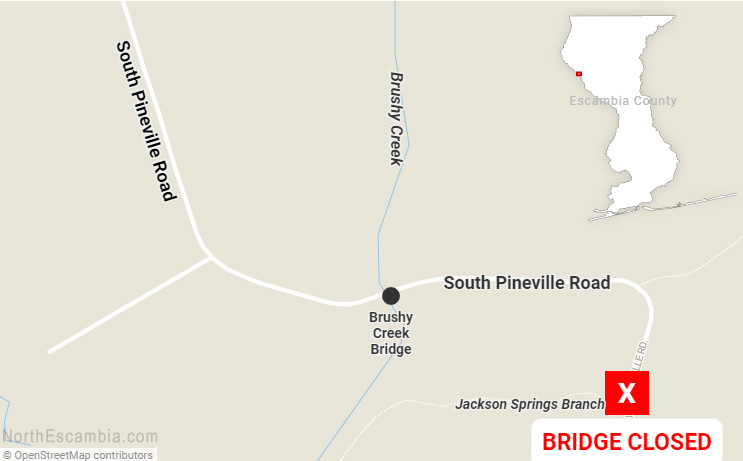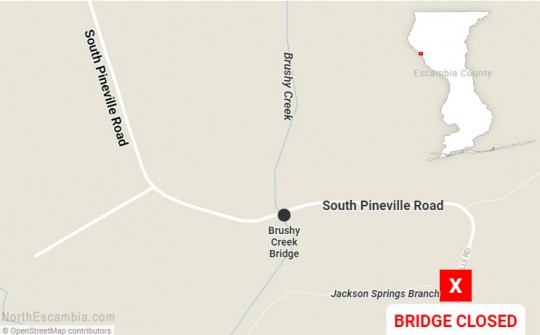 South Pineville Road at Jackson Springs Branch will be closed for bridge repair for about a month.