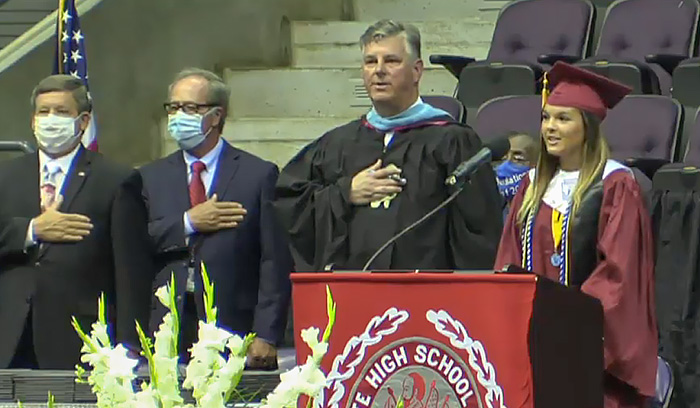 “I don’t know about you guys, but I want a do-over,” Senior Class President Avery Young told her classmates. “Another opportunity to compete on the field or court, another Friday night under the lights, another chance to watch the band perform, another night of Whataburger with our friends, another rodeo, prom, senior skip day, and another last day of school – that we actually know about. And another chance to be in the moment to realize we were in the good old days.”