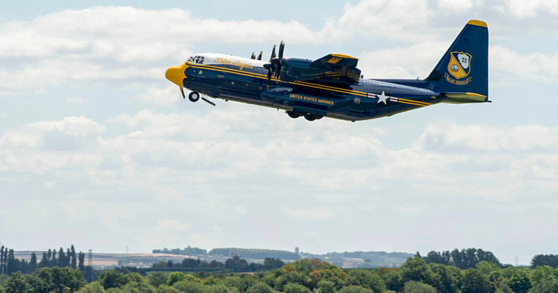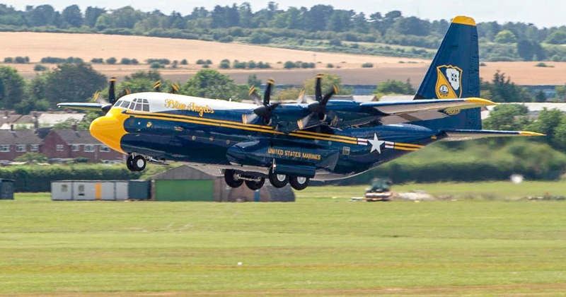 Blue Angels fans may notice a couple of changes to the paint scheme compared to the previous Fat Albert. The flight surfaces now have yellow tips, similar to the Blues’ F/A-18s, two stripes run down the side of the aircraft and the iconic white top has been changed to a tear drop design.