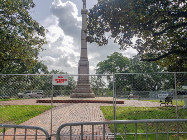 Pictured: The Lee Square Confederate monument in Pensacola was fenced off last week. NorthEscambia.com photos by Kristi Barbour, click to enlarge.
