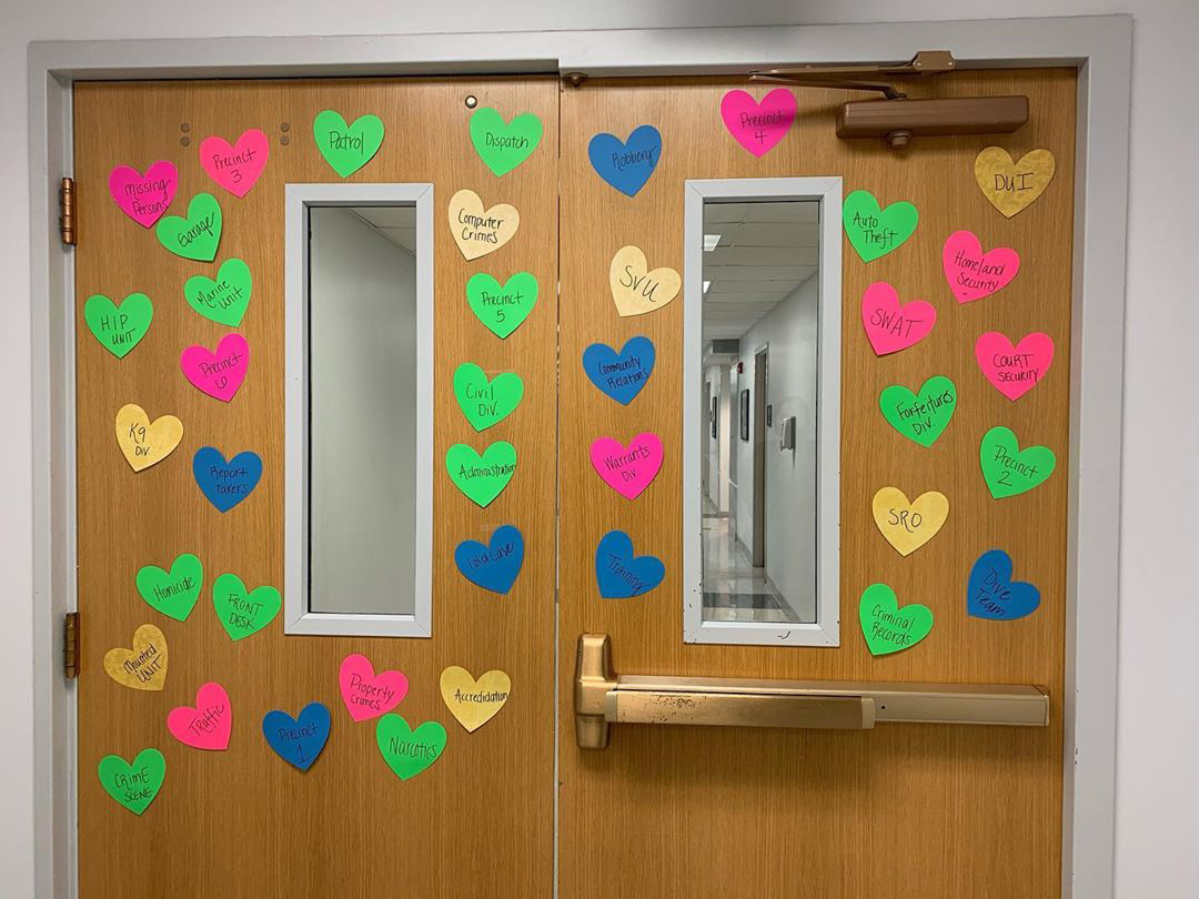 The Northwest Florida LEO Wives hung “hearts for heroes” at the Escambia County Sheriff’s Office and the Santa Rosa County Sheriff’s Office to show their support and appreciation. Photos for NorthEscambia.com, click to enlarge.