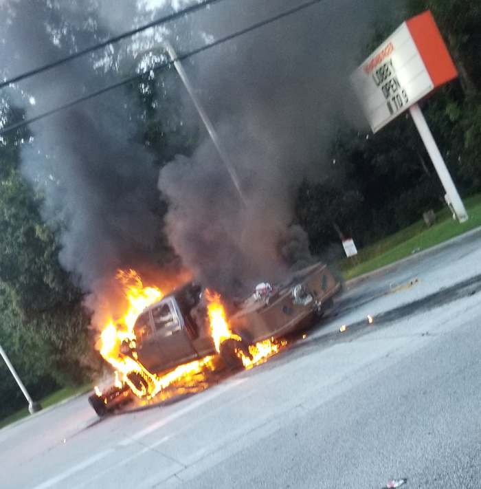 wow… that one heck of an expensive truck to be catching on fire like that..