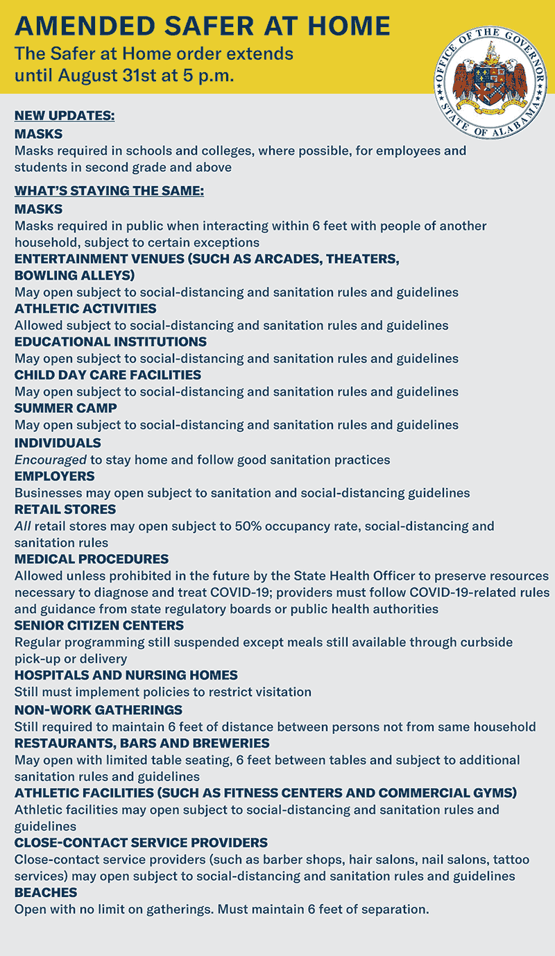 In a Wednesday press conference, Gov. Kay Ivey announced the state’s mask order, which was set to expire on Friday, has been extended through August 31 at 5 p.m.