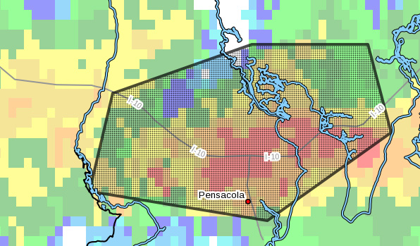 The advisory area is along and both north and south of I-10, including Brent, Ferry Pass, Gonzalez, Pine Forest area, Bellview, Beulah, Pace and Pea Ridge (map below).