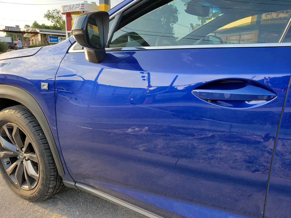 This guy nicked our car while speeding on the highway. Startling experience, but not damage on our side, happily.