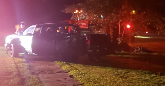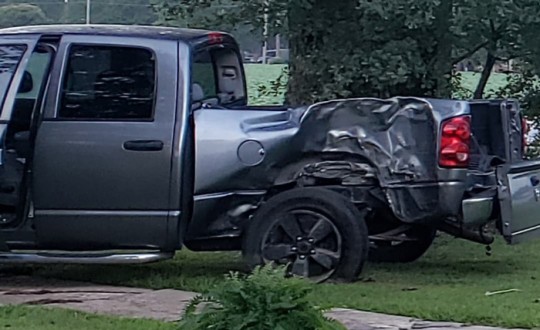 About 4:45 a.m. Thursday, a pickup truck left Highway 97 near Arthur Brown Road, traveled across a yard and slammed into an oak tree and a car parked in Luanne Henderson’s yard. Just feet away in the direction the vehicle was traveling is her house. The pickup truck wrapped around the tree and was deflected away from the house.