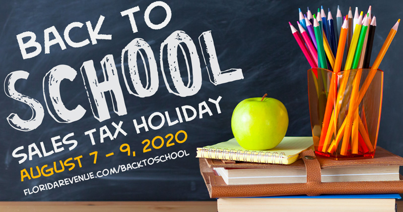 The 2020 Back to School Sales Tax Holiday is underway in Florida. During this sales tax holiday period, qualifying items will be exempt from tax, including: