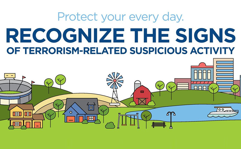 For more information on how to recognize the signs of terrorism related suspicious activity, click here (pdf).