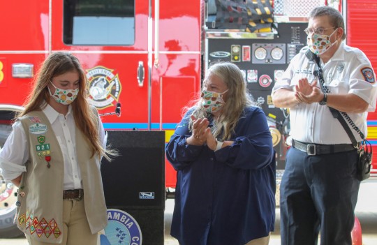 A Molino Girl Scout was honored as a hero Wednesday afternoon for saving her family from a January 2019 house fire on Crabtree Church Road.