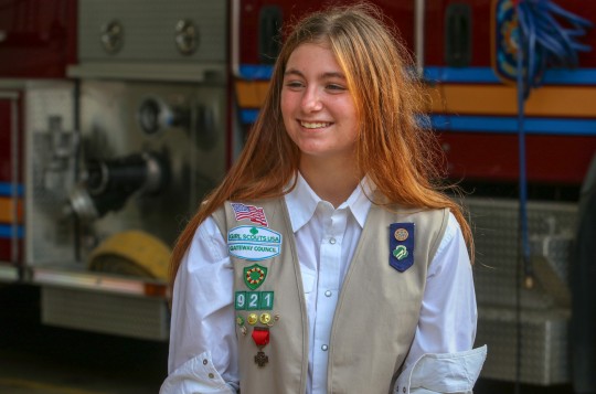 Destany McKim, 14, was presented with the Girl Scout Bronze Cross for Valor for saving her mother and grandmother from the fire about 12:30 a.m. on January 25, 2019. The award is the highest honor given by the Girl Scouts for saving a life.