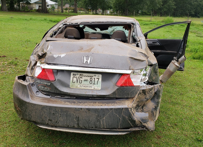 The driver of a Honda Accord ran off the road, struck a culvert, traveled through a fence and overturned multiple times into an open pasture on Nicholson Drive near the Molino Chapel.