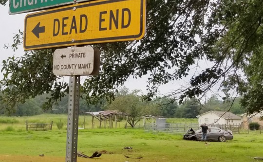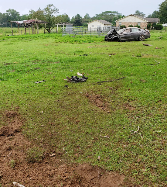 This person had to have been speeding, or else missed the stop sign – especially for the vehicle to travel that far after hitting a culvert.