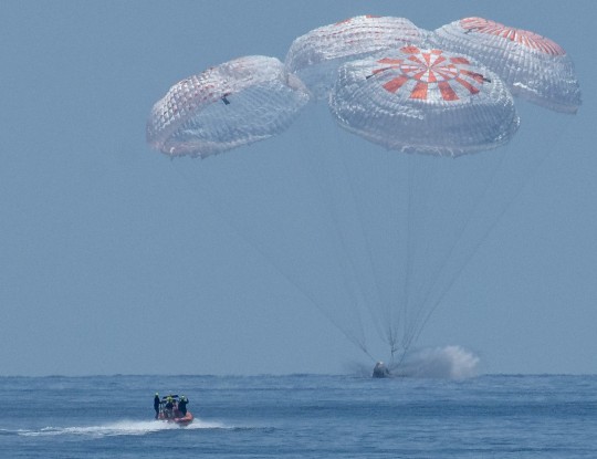 SpaceX’s Crew Dragon, carrying Robert Behnken and Douglas Hurley, splashed down under parachutes at 1:48 p.m. Sunday and was successfully recovered by SpaceX. After returning to land at Pensacola Naval Air Station, the astronauts were flown back to Houston.