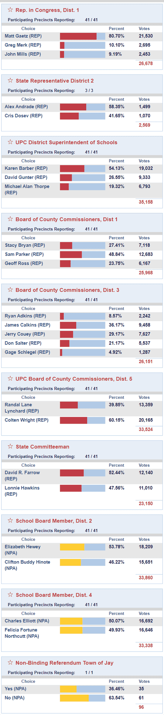 Here are results from the Primary Election in Santa Rosa County from NorthEscambia.com.