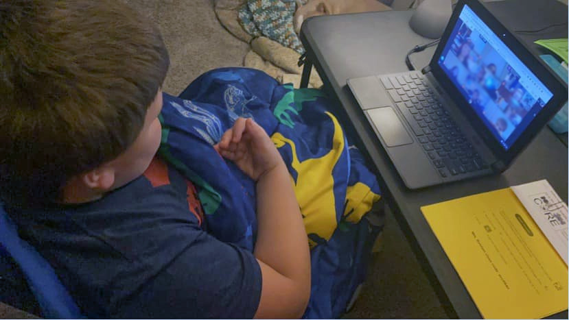Pictured above: The first day of school at Kingsfield Elementary School. Pictured below: The first day of school for a distance learner in Escambia County. Parent submitted photos for NorthEscambia.com, click to enlarge.