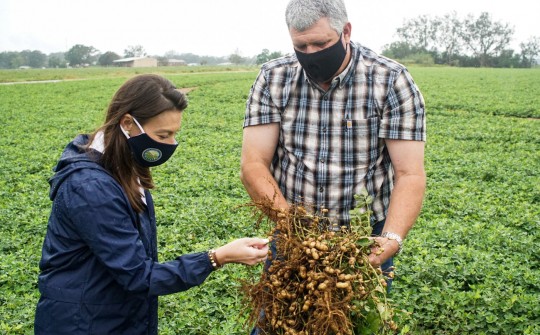 Pictured: Florida Commissioner of Agriculture and Consumer Services Nikki Fried talked with local farmers and had a chance to see crop devastation across northern Escambia and Santa Rosa counties Sunday. NorthEscambia.com and courtesy photos, click to enlarge.