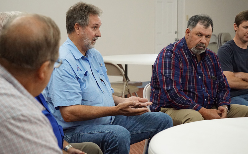 Sunday, Fried met with farmers in Walnut Hill and Jay about the effects of the Category 2 hurricane that left behind about 15 inches of rain across the area.