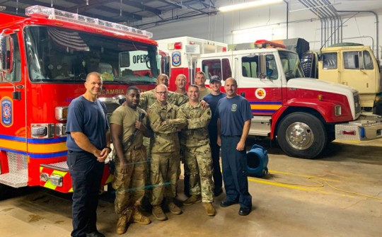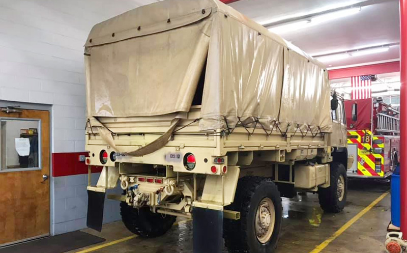 Pictured top: Escambia Fire Rescue Engine 6 “B” watch with a Florida National Guard support unit Tuesday night. Pictured below: National Guard high water rescue vehicles at the Ensley and Molinos stations of Escambia Fire Rescue. NorthEscambia.com and courtesy photos, click to enlarge.