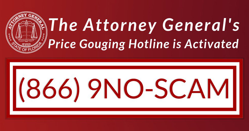 Florida’s Attorney General has activated her price gouging hotline.