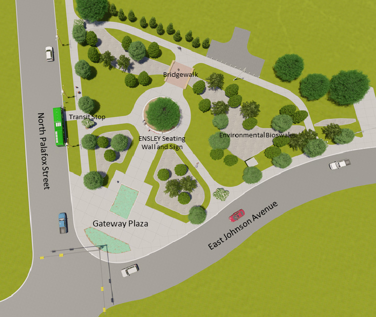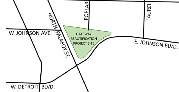 A gateway beautification project is planned for the an open parcel north of the intersection of North Palafox Street and East Johnson Avenue in Ensley. It’s in the area that remained after the realignment of West Detroit Boulevard and East Johnson Avenue.