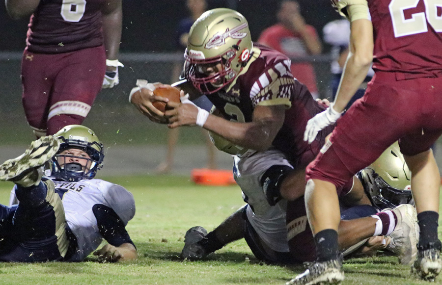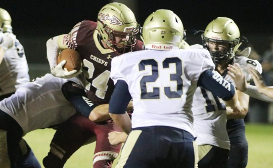 After a couple of strong runs from senior Jayden Jackson, Jamarcus Jefferson was in for another Chiefs TD. Also on deck for the Chiefs scoring was quarterback Kaden Odom on a 67-yard touchdown pass to Jefferson topped off with a two-point conversion from Jackson. Odom also had an 8-yard touchdown run in the fourth.