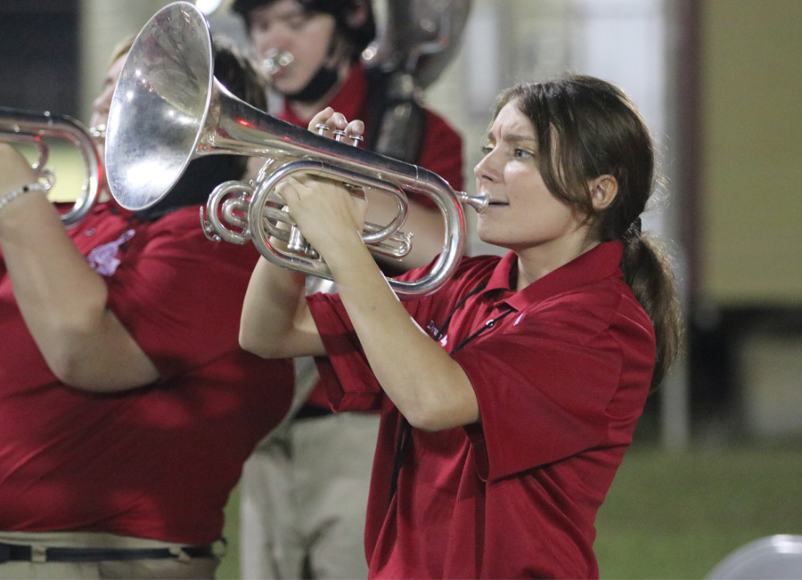 For a photo gallery, click here. (Includes game action, band and cheerleaders.)