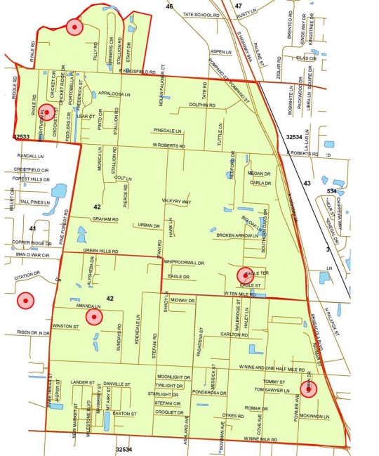 The spray area between is planned for an area generally between West Nine Mile Road and West Kingsfield Road, between Pine Forest Road and Highway 29.