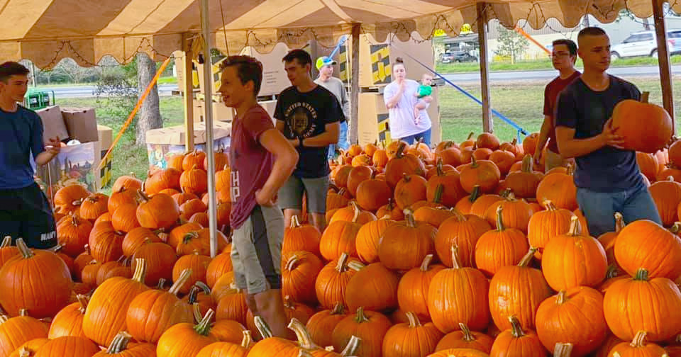 The pumpkins have arrived at the Allen Memorial United Methodist Church Pumpkin Patch. The Molino Volunteer Fire Department, along with junior fighters, and volunteers from the Northview High School NJROTC help unload the pumpkin truck on Sunday.