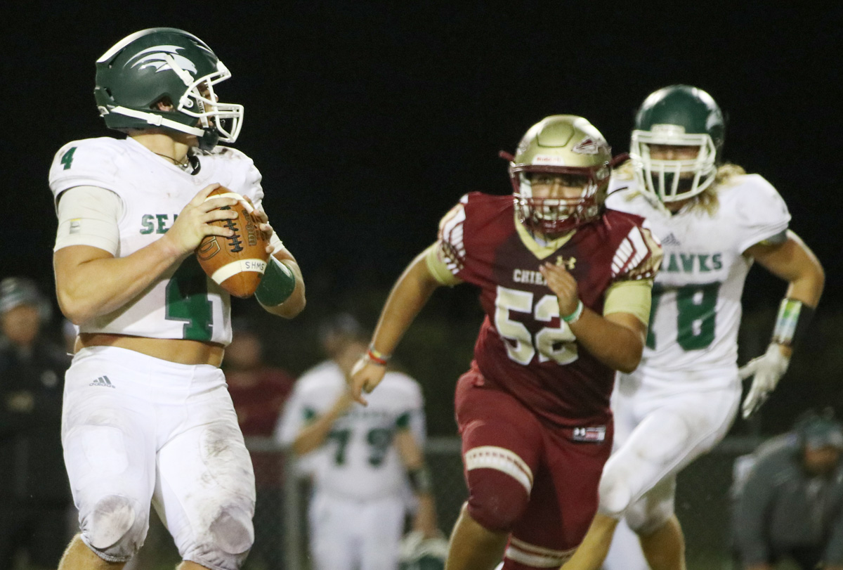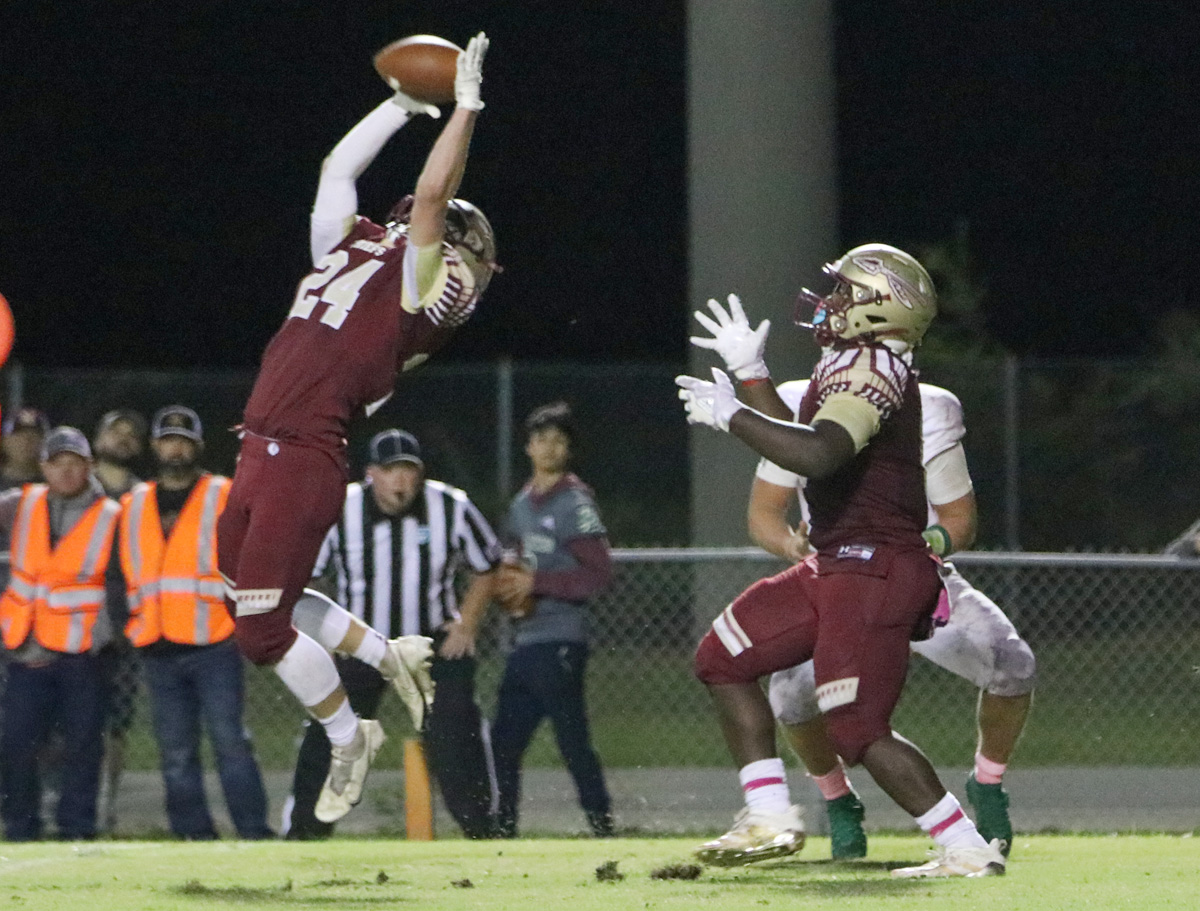 A South Walton pass was picked off by Luke Bridges and ran back to the 1-yard line, setting up a touchdown by Bridges and a 21-7 Northview advantage. It was the first interception of the night; he picked off a Seahawks toss in the endzone late in the game (pictured below).