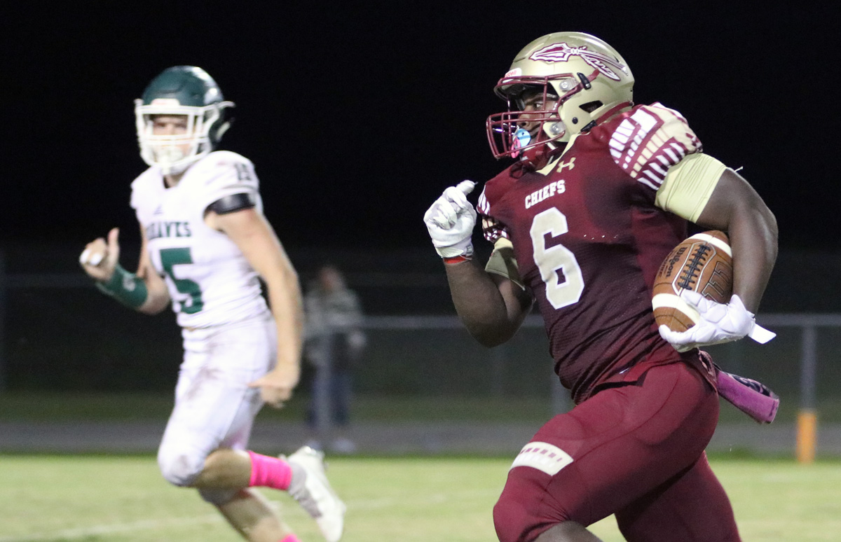 With a 48-yard run from Jackson, the Boys from Bratt were up 27-10. With a Jamarkus Jefferson TD, the Chiefs were in the lead 35-20. Tied at 35-all in the third quarter, Jackson put the Chiefs back on top 41-35.
