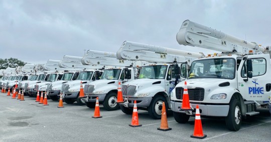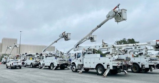 Crews from Clay Electric Cooperative in Keystone Heights, Florida, were in place by Wednesday afternoon and ready to assist EREC linemen as soon as storm conditions subside.d Additional crews are avaialble to respond if needed.