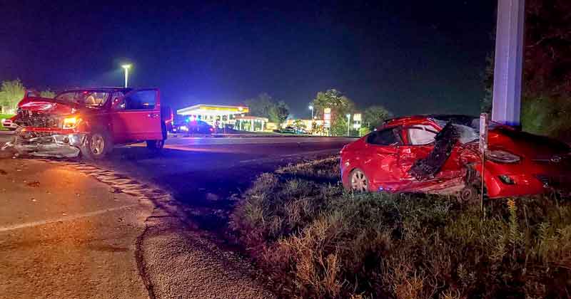 The crash happened at Highway 29 and Kingsfield Road about 7:40 p.m. and involved a passenger car and pickup truck. The young adult female driver of the car was transported to a Pensacola hospital in critical condition, while one person in the pickup truck was injured.