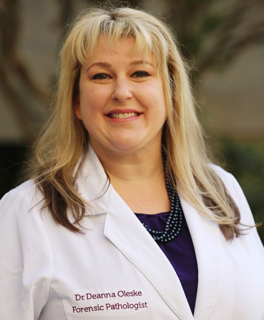 Oleske holds active medical licenses in Florida and Texas. She earned a medical doctorate from Wayne State University in Detroit, Michigan and a Bachelor of Science in Biology from Indiana University in Bloomington. Dr. Oleske is double board certified in forensic pathology and anatomic pathology. She is currently a deputy medical examiner at the Fort Bend medical examiner’s office in Rosenberg, Texas and an associate medical examiner at the District 1 medical examiner’s office in Pensacola. From December 2016 to May 2020, she was an associate medical examiner at the District 23 medical examiner’s office in St. Augustine. Dr. Oleske is also an assistant clinical professor of pathology and the forensic pathology clerkship site director at the University of Central Florida.