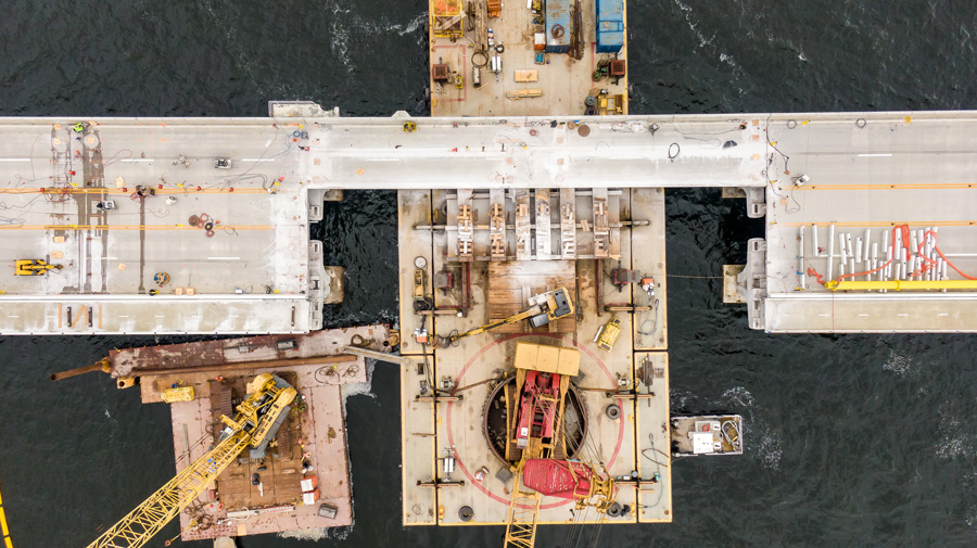 Three bridge contractors mobilized by FDOT are working around the clock, focusing their efforts at the outermost spans of the bridge to facilitate construction and minimize impacts to the existing structure. To date, more than 300 additional workers have been brought in to increase resources for demolition and reconstruction, salvage and pile operations, and concrete fabrication.