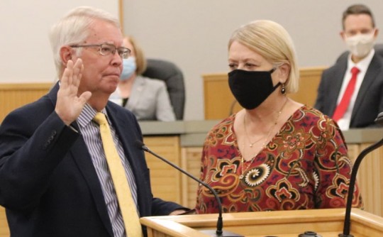 District 4 school board member Patty Hightower and District 5 member Bill Slayton were sworn in for another four years on the board. Both were reelected with no opposition.