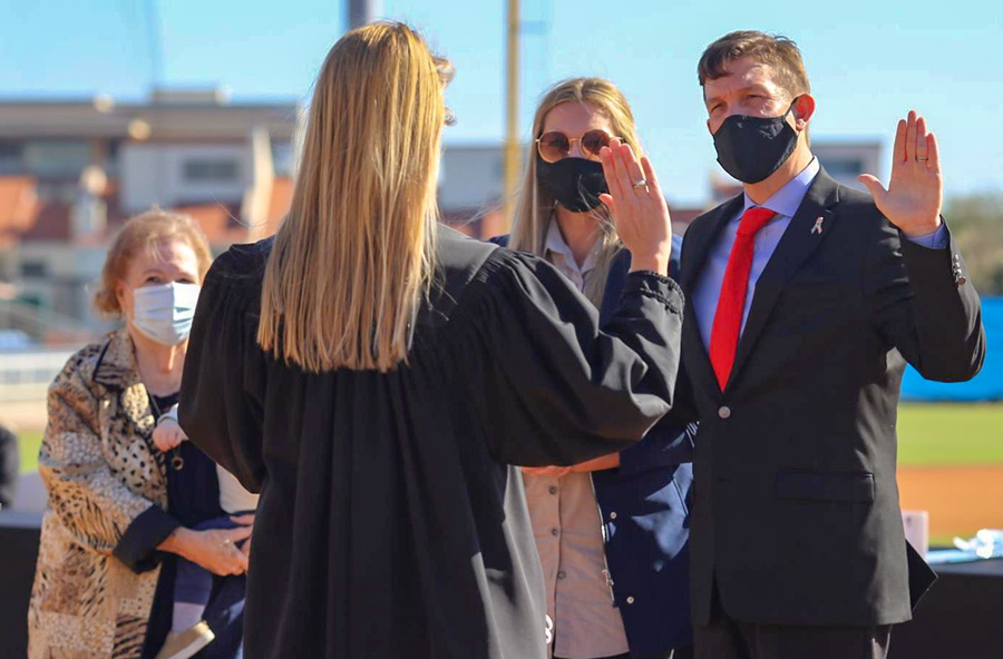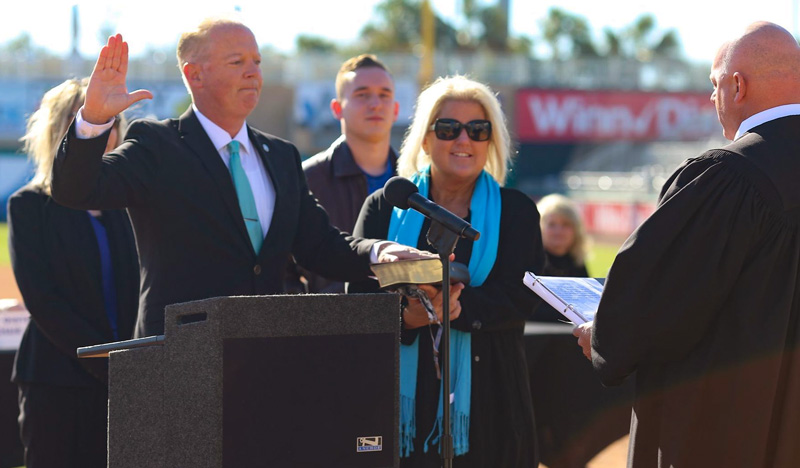 “I want to thank God. Nothing’s more important…,” said Jeff Bergosh, who was sworn in by his brother, Circuit Court Judge Gary Bergosh. “Nothing happens without Him, so I thank God for all His blessings on me, this community and our wonderful country.”
