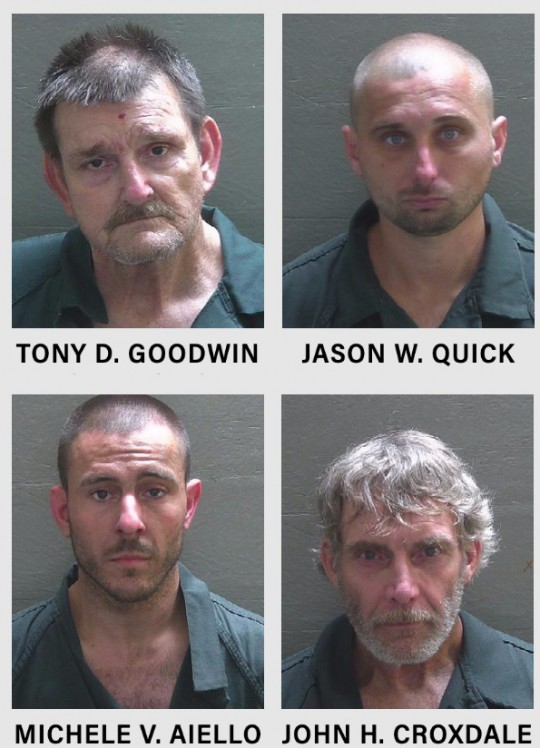 Tony Darlus Goodwin, 59; Jason Wayne Quick, 31; Michele Vincenzo Aiello, 32; and John Henry Croxdale, 57, were all arrested on narcotics related charges.