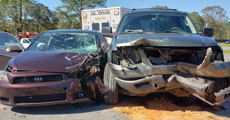 Two people were transported to the hospital by Escambia County EMS, and a juvenile was taken to the hospital in a private vehicle following the wreck.