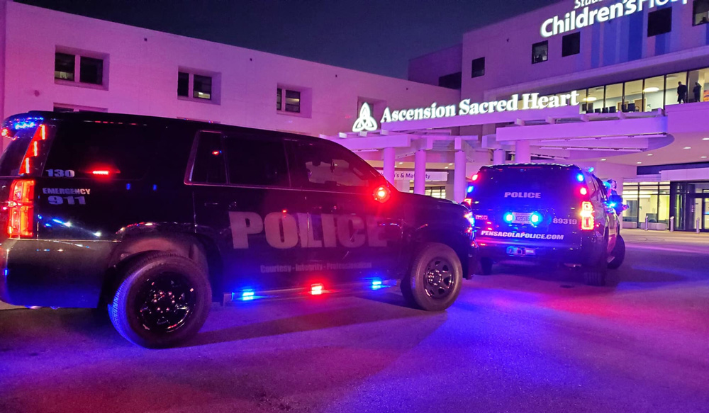 The Pensacola Police Department, Pensacola Fire Department, Escambia County Sheriff’s Office, Florida Highway Patrol and others put on a Christmas light show Christmas eve night at Studer Family Children’s Hospital.