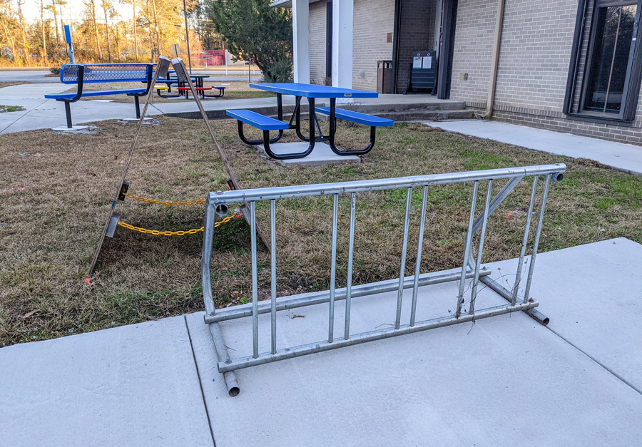 An additional sidewalk, benches, bicycle area and tables have already been added outside the library.