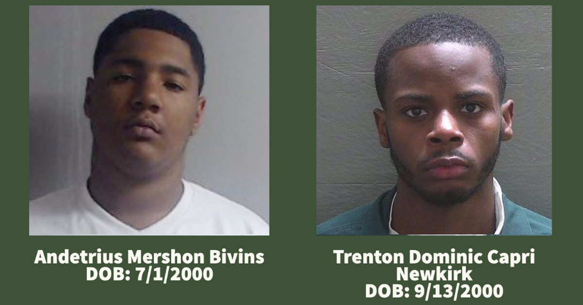 Investigators want to question Andetrius Mershon Bivins and Trenton Dominic Capri Newkirk, both age 20, about the December 29 homicide of Jeffrey Kennell, Jr. at the Forest Creek Apartments on Patton Drive.
