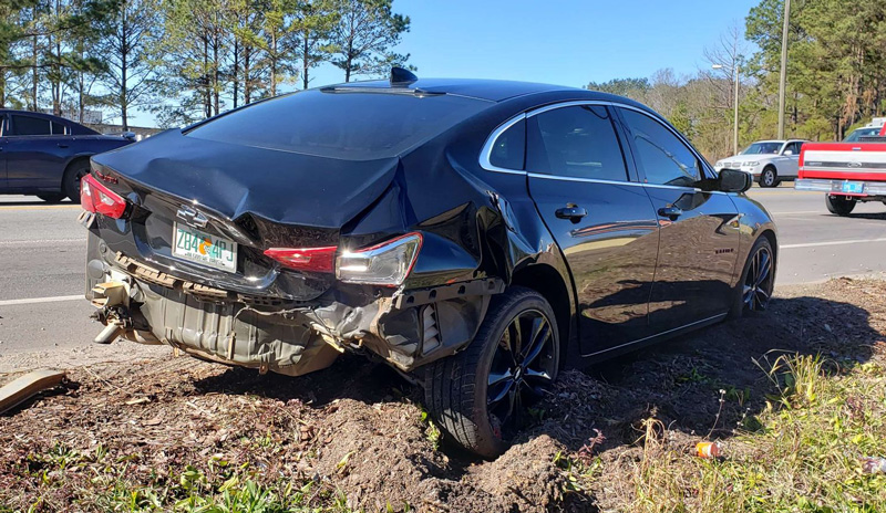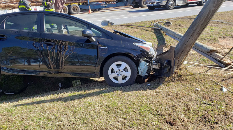 A driver rear-ended another vehicle before veering across the roadway and striking a utility pole in front of International Paper. A power service line was downed across Highway 29, closing the roadway until Gulf Power could remove it.