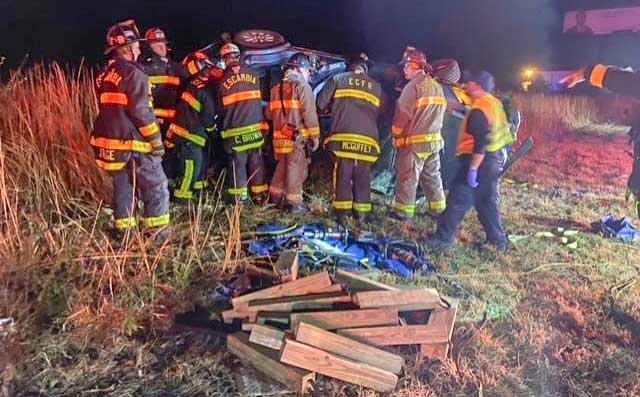The Florida Highway Patrol said a 49-year old Pensacola man was traveling south on Highway 29 near Archer about 4:30 a.m. when his SUV was struck from the rear. The SUV traveled across the median intp the northbound lanes and overturned off the roadway.