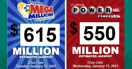 The Mega Millions jackpot increased to an estimated $615 million and Power Ball rolled over to an estimated $550 million.