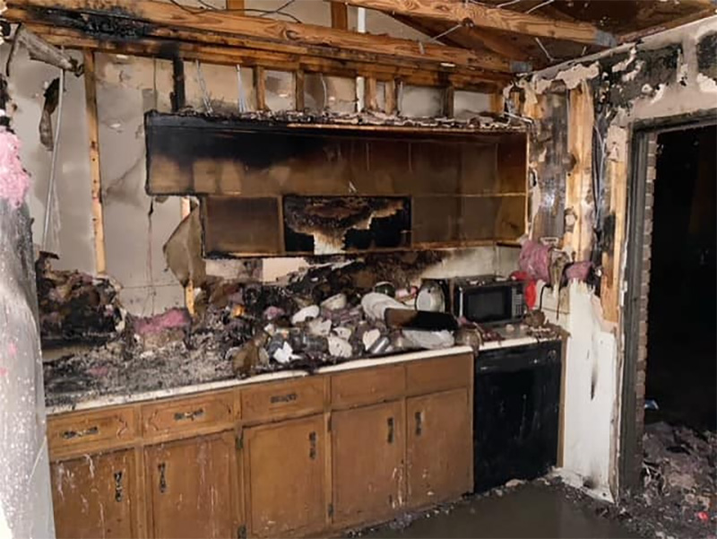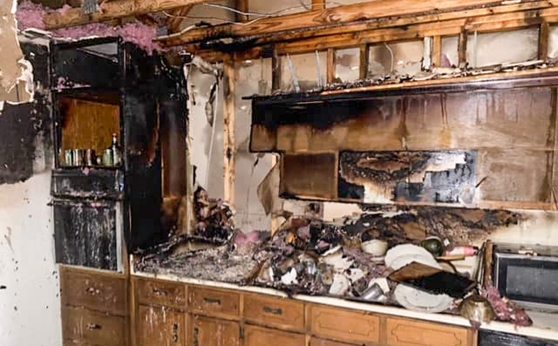 The fire was quickly extinguished. The blaze caused heavy damage to one kitchen and smoke damage throughout.’