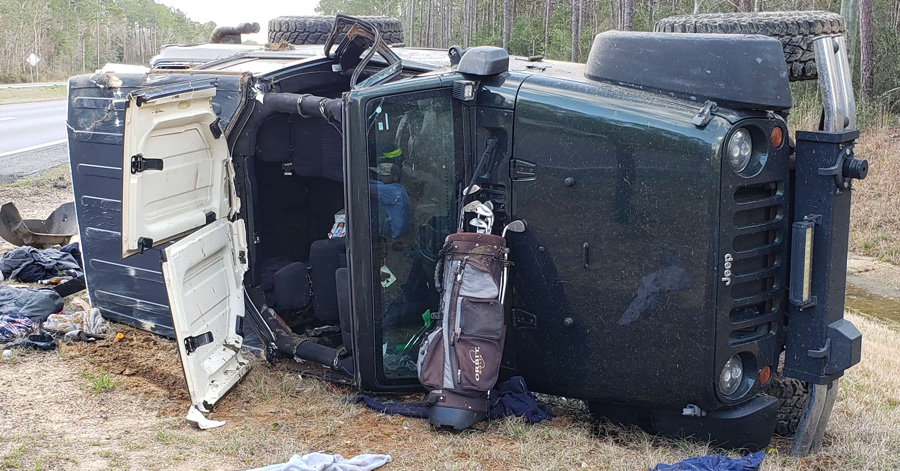 The driver of a Jeep lost control and overturned. He was transported to an area hospital by Escambia County EMS with injuries that were not considered life threatening.