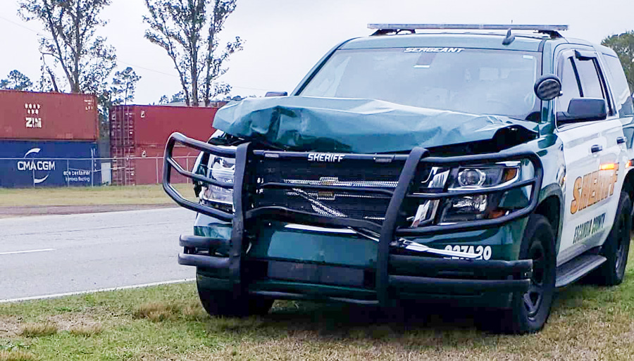 During the pursuit, Sgt. James Newton “bumped” Gardner’s vehicle near Ascend Park in an attempt to stop him. Gardner then backed into the sergeant’s vehicle. The cruiser was located on the shoulder of the road near the park with heavy damage to the push bar and hood (photo above).