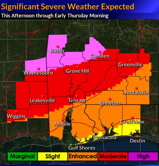 “Potential threats include strong tornadoes, damaging winds in excess of 80 mph…”. This scared me at first but it looks like the meant 30 mph.