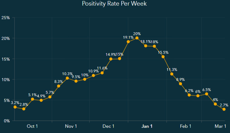 “We are glad to see these numbers coming down for our community and for our hospitals,” Mayor Grover Robinson said. “Please continue to take preventive actions, including wearing a mask, washing your hands often, and staying home if you are sick.”