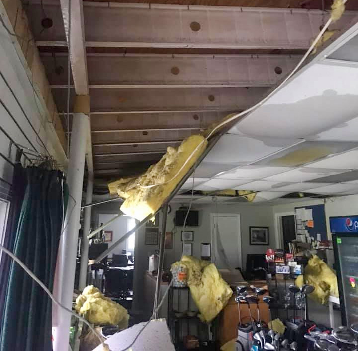 High winds caused damage both inside and outside the clubhouse at the course on Old Chemstrand Road.